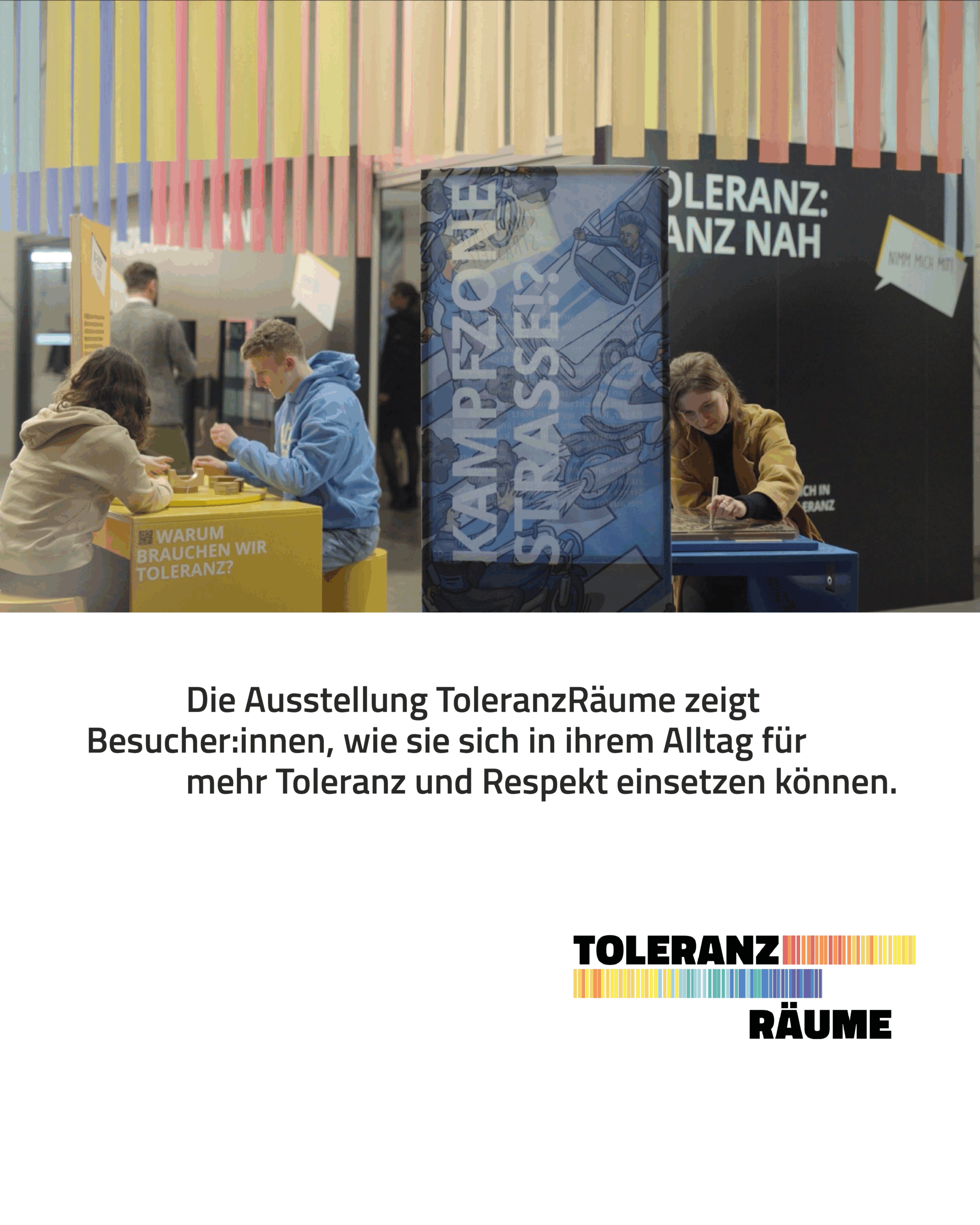 Die Ausstellung beschäftigt sich mit Toleranz – im täglichen Miteinander, in gesellschaftlichen Debatten und in persönlichen Lebensräumen. Sie lädt ein, eigene Perspektiven einzubringen, macht Unterschiede sichtbar und regt zur Auseinandersetzung mit Vielfalt und Widersprüchen an.